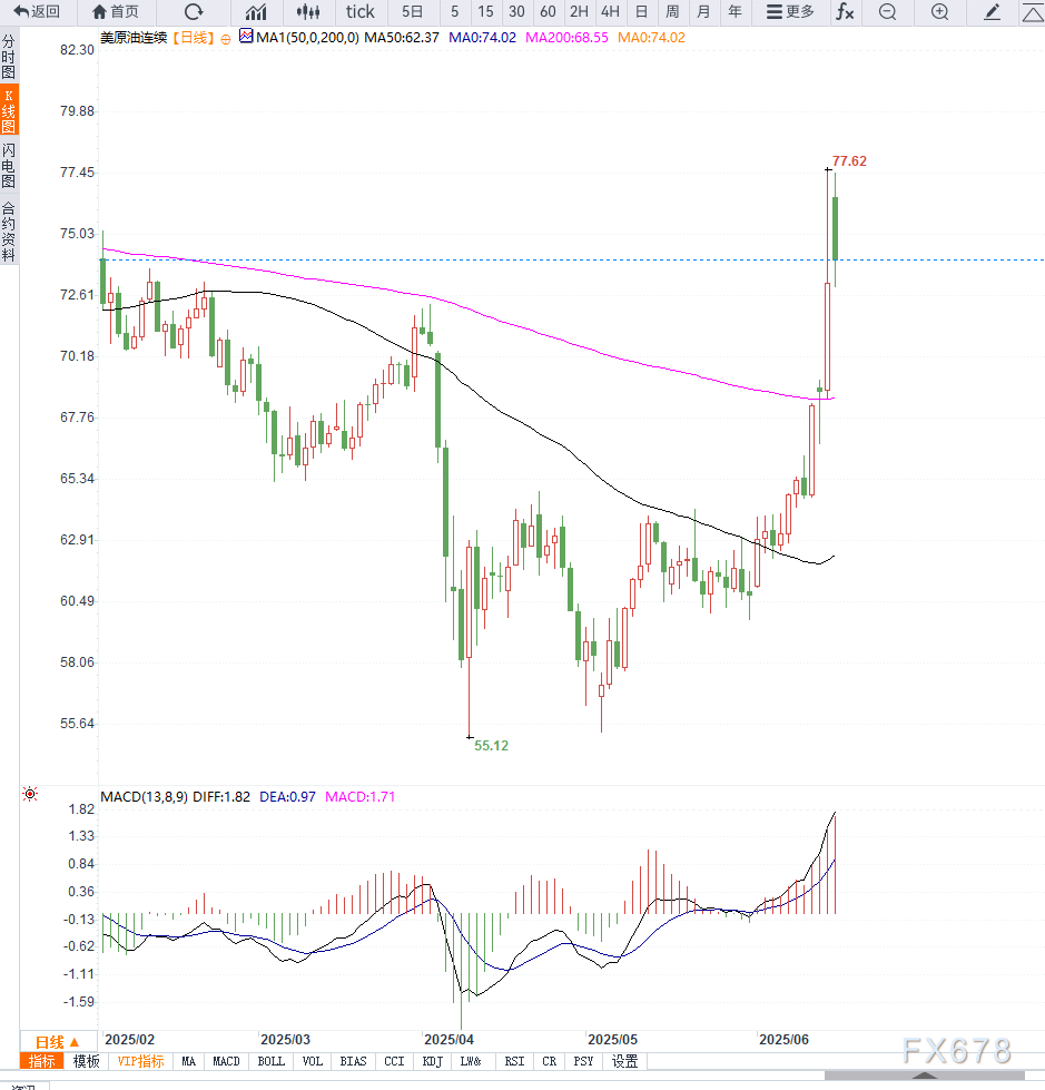 但需注意,日线图上的相对强弱指标(RSI)已接近超买区,若地缘消息面未有进一步刺激,不排除高位出现技术性整理或短暂回调的可能。整体来看,短期内油价上行动力仍存,但震荡加剧的概率同步上升,市场情绪将持续受制于中东局势的最新动态。