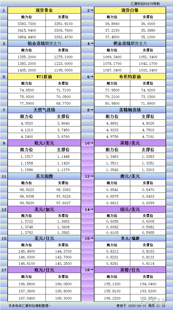 VT官网官网一张图看商品支撑阻力:金银油气+铂钯铜农产品期货(2025年6月18